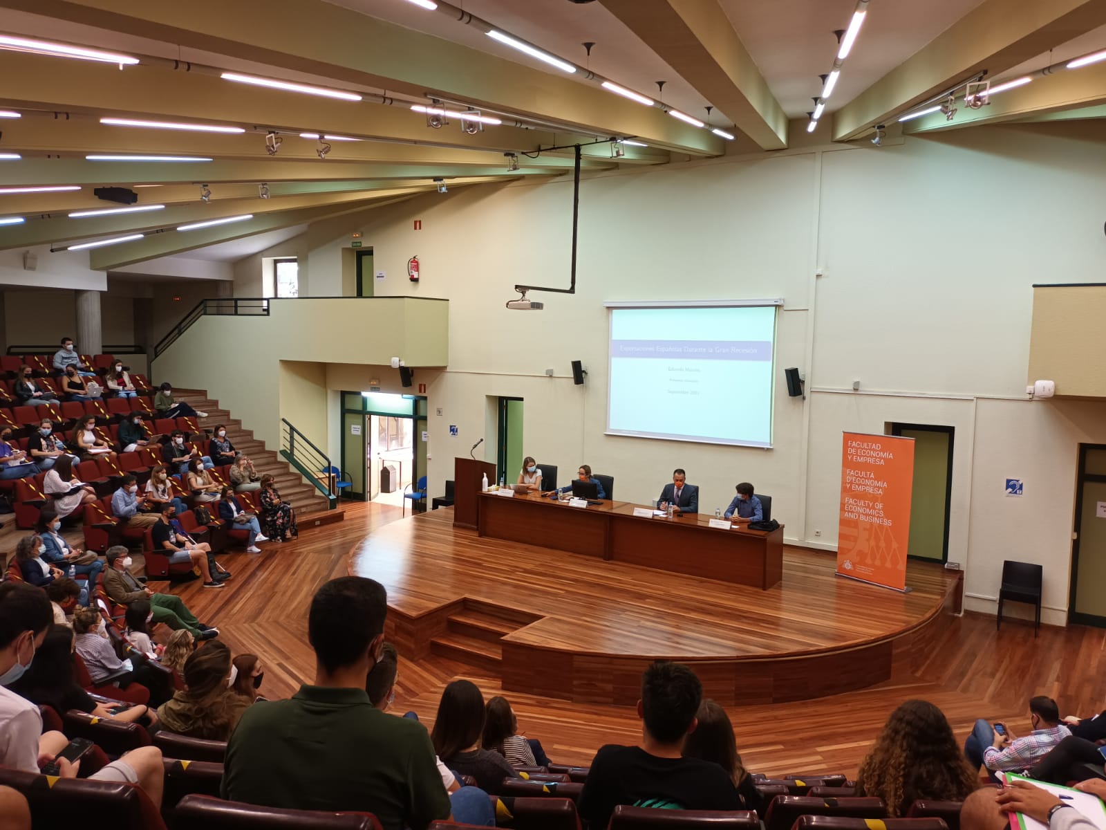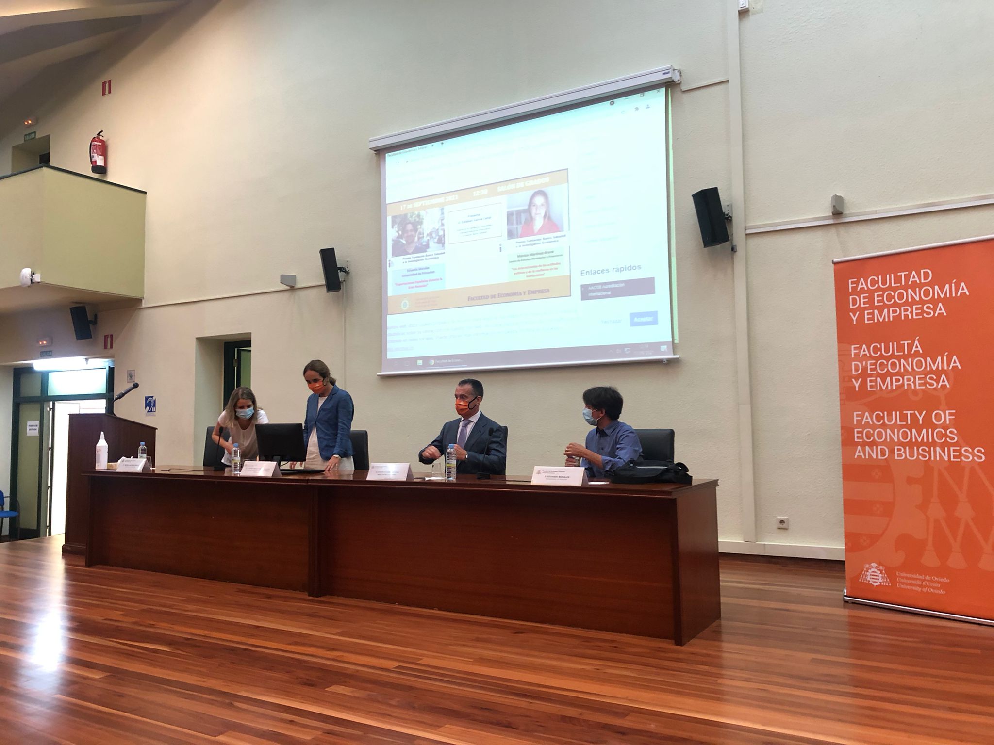 En el día de hoy el Director de la Cátedra FBS de Crecimiento e Internacionalización empresarial se encargó de realizar la presentación de los galardonados en la 19ª (Eduardo Morales) y 20ª (Mónica Martínez-Bravo) ediciones del Premio Fundación Banco Sabadell a la Investigación Económica en el transcurso de la Conferencia que ambos impartieron en la Facultad de Economía y Empresa.