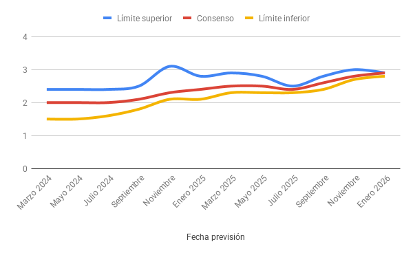 Fuente: elaboración propia a partir de FUNCAS (Panel de previsiones de la Economía Española, varios números).