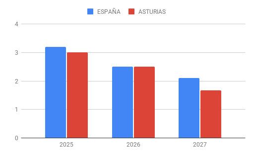 La economía asturiana se ha mostrado dinámica durante 2025, año para el que se estima una tasa de crecimiento interanual del PIB regional en torno al 2,6%, ligeramente inferior a la prevista para el conjunto nacional (2,9%).
